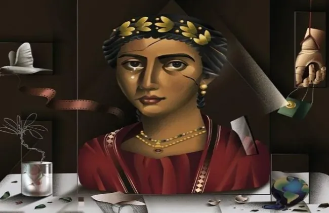 موضوعات أساسية للوعي البيئي والتراث الفني، والنقطة المحورية هي شخصية أنثوية منمقة مستوحاة