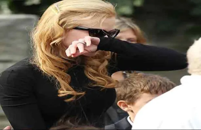 ظهرت النجمة العالمية نيكول كيدمان خلال وصولها إلى جنازة والدتها جانيل، وظهر عليها التأثر