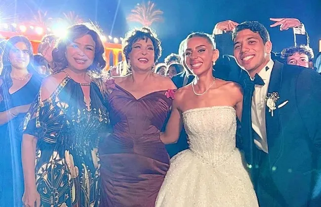 نشرت الفنانة إلهام شاهين صورا جديدة من احتفال المخرج رامي إمام بزفاف نجله عادل