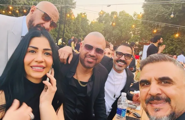 وسط عدد كبير من نجوم الفن والموسيقى في مقدمتهم المنتج الكبير محسن جابر والنجمة أنوشكا