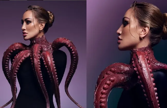 وذلك بسبب اطلالتها الأخيرة التي ارتدت فيها تصميم على شكل أخطبوط من عند الرقبة