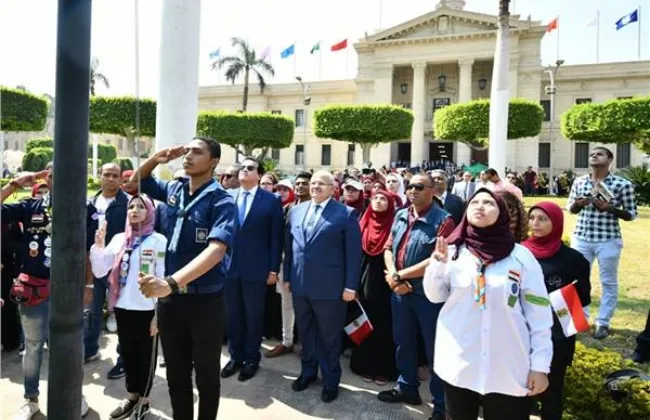رئيس جامعة القاهرة يشهد تحية العلم مع الطلاب تزامنًا مع انطلاق العام الجامعى