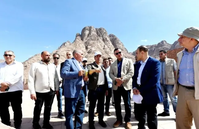 لمتابعة المراحل النهائية لمشروعات تطوير موقع التجلي الأعظم فوق أرض السلام، كما يتفقد