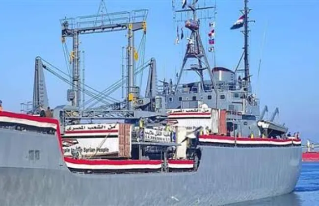التابعة للقوات البحرية المصرية محمل عليها أكثر من 200 طن من المساعدات الإغاثية من مواد غذائية