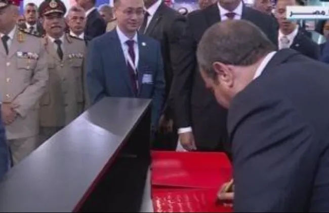 وقع الرئيس عبدالفتاح السيسي في سجل جناح دولة الصين بمعرض مصر للطيران والفضاء بالعلمين