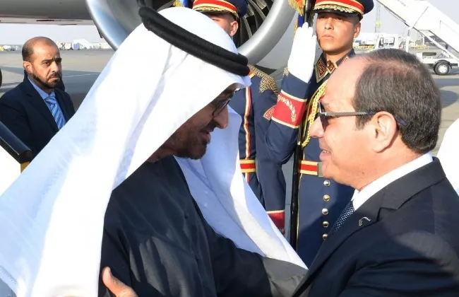 الرئيس السيسى يودّع الشيخ محمد بن زايد بمطار العلمين فى ختام زيارته الأخوية لمصر
