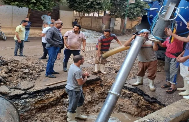 أفادت شركة مياه الشرب والصرف الصحى بالجيزة، بحدوث كسر بخط مياه قطر 600 مم