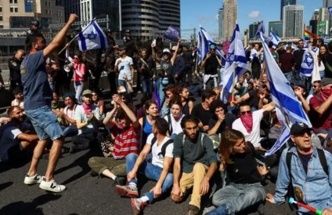 حتى الأن لمظاهرات لعشرات الإسرائيليين تحت شعار" أوقفوا الحرب.. أسفون يا إيران"