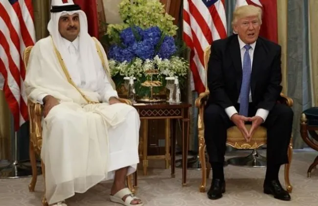 مراسم التوقيع كل من أمير دولة قطر، الشيخ تميم بن حمد آل ثاني، والرئيس ترامب