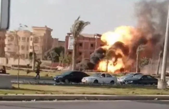 اندلاع حريق نجم عن كسر بخط غاز رئيسي على طريق الواحات بمدينة 6 أكتوبر