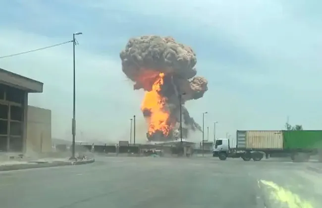 انفجار ضخم يهز ميناء شهيد رجائي في بندر عباس جنوب إيران