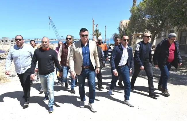 بتفقد أعمال رفع كفاءة طريق الازدواج "الخدمة" من مارينا 1: مارينا 3، وإنشاء سور منطقة الشانزلزيه