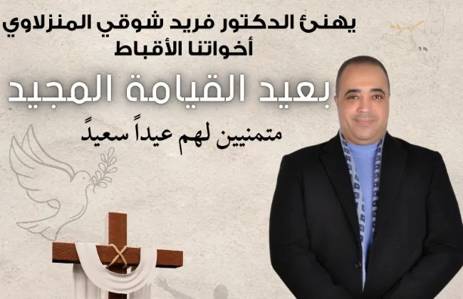 تقدّم الدكتور فريد شوقي، عضو الهيئة العليا لحزب العدل، وعضو منظمة العفو الدولية، وأمين محافظة الإسكندرية بالحزب، بخالص التهاني القلبية للإخوة المسيحيين بمناسبة عيد القيامة المجيد، متمنيًا لهم عيدًا سعيدًا ملؤه السلام والمحبة.