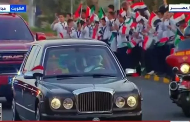 بالأعلام المصرية والكويتية.. الأطفال يستقبلون الرئيس السيسى فى الكويت