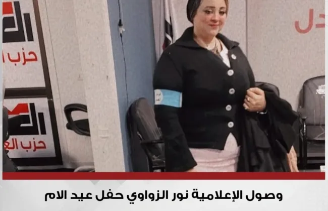 الإعلامية نور الزواوي تصل إلى احتفالية عيد الأم بحزب العدل وموقع صوت مصر