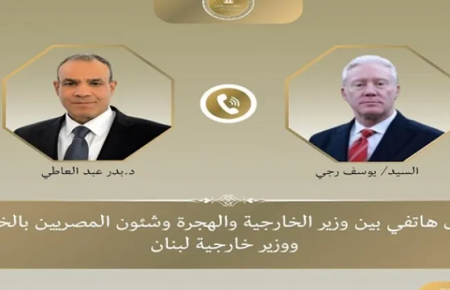تلقى د. بدر عبد العاطي وزير الخارجية والهجرة اتصالًا هاتفيًا اليوم السبت من نظيره اللبناني "يوسف رجى"