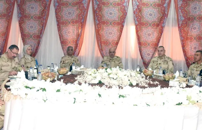 الفريق أحمد خليفة يتناول وجبة الإفطار مع مقاتلى هيئة الإمداد والتموين