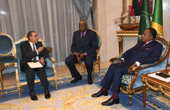 رئيس جمهورية الكونجو بحضور وزير الدفاع الكونغولى فى العاصمة برازافيل، حاملًا رسالة من