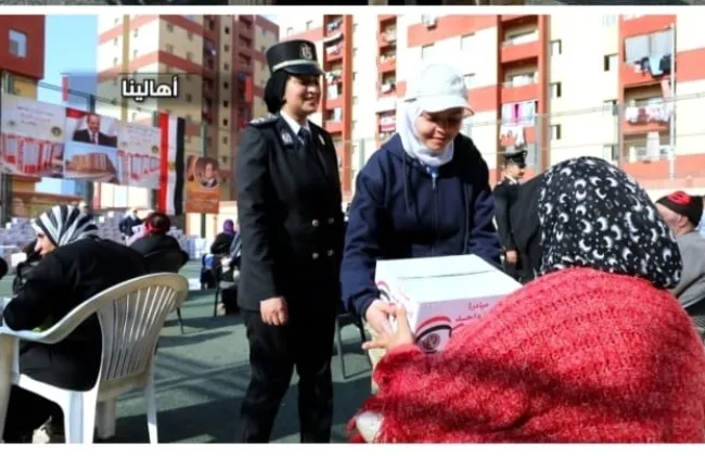 أطلقت وزارة الداخلية قوافل إنسانية لتوزيع المساعدات العينية "عبوات سلع غذائية بالمجان" على قاطنى المناطق