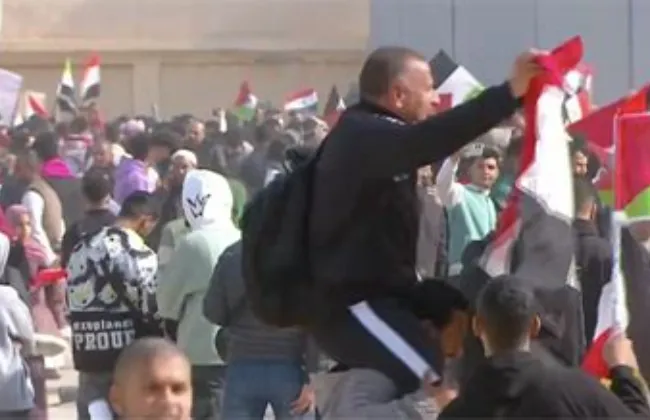 احتشد آلاف المصريين أمام معبر رفح رفضا للتهجير القسري للفلسطينيين ورفع المحتشدون