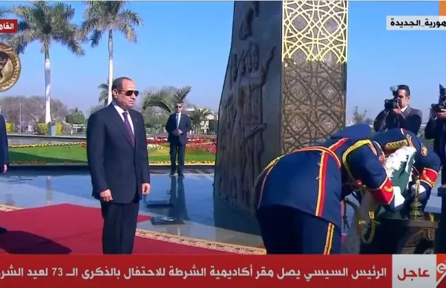 شارك الرئيس عبد الفتاح السيسي، في وضع إكليل من الزهور على النصب التذكاري بأكاديمية الشرطة