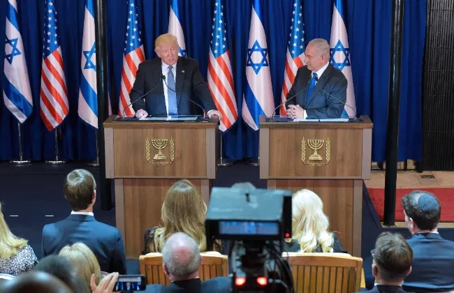 الرئيس الأمريكي دونالد ترامب ورئيس الوزراء الإسرائيلي بنيامين نتنياهو في واشنطن، والرامية إلى