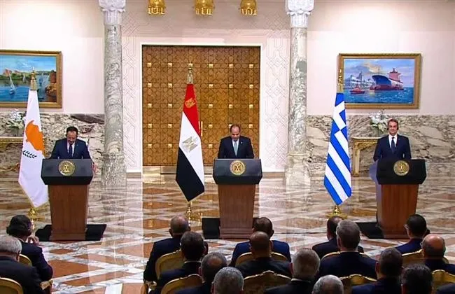 قال الرئيس السيسي خلال مؤتمر صحفى مشترك مع رئيس وزراء اليونان ورئيس قبرص في قصر الاتحادية