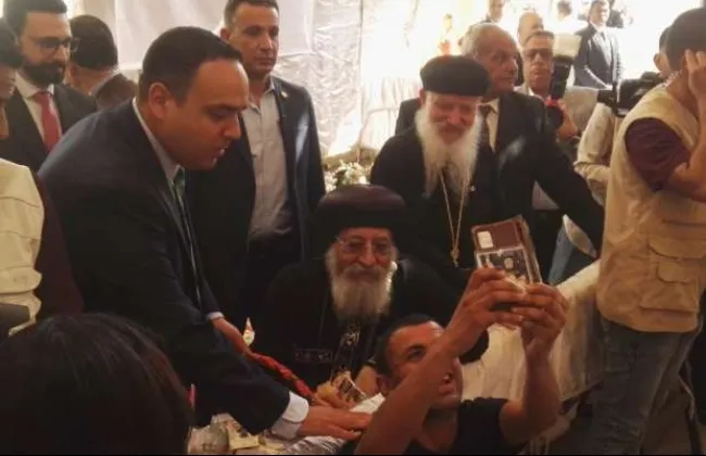 الأسر القبطية بـ الكاتدرائية المرقسية بالعباسية، وذلك للتهنئة بـ عيد الميلاد المجيد، حيث وزع عليهم قداسته الحلوى