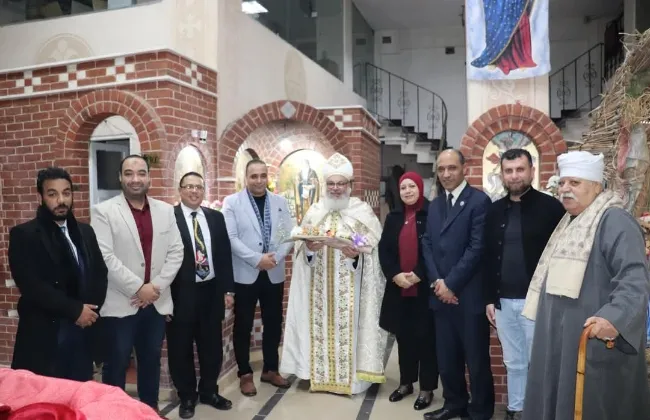 لتهنئة الانبا بافلى جاد بعيد الميلاد بجو من الفرحه ، والسرور والحب وقاموا بتقديم الورود تعبيرا عن سعادهم