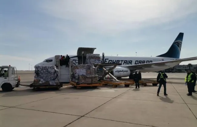 طائرة مساعدات مصرية تصل دمشق وعلى متنها 15 طنا من المواد الطبية والإغاثية
