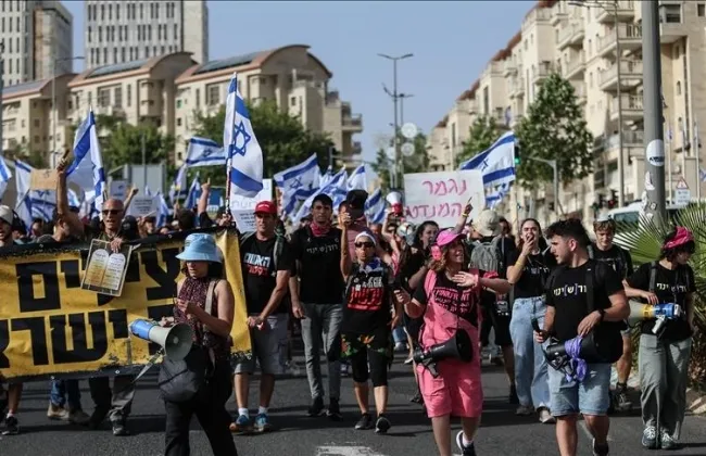 تظاهر مئات الإسرائيليين، اليوم الأربعاء وقاموا بإغلاق شارعا مؤديا لوزارة الدفاع بتل أبيب للمطالبة