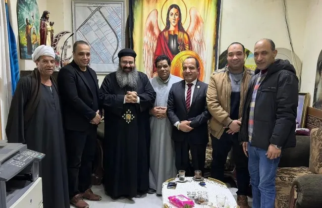 المحبة تجمعنا.. الدكتور فريد شوقي المنزلاوي في لقاء ودي بكنيسة الملاك ميخائيل والأنبا مرمينا السائح