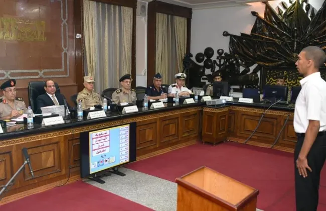 شهد الرئيس عبد الفتاح السيسى رئيس الجمهورية القائد الأعلى للقوات المسلحة، اليوم، اختبارات كشف الهيئة للطلبة