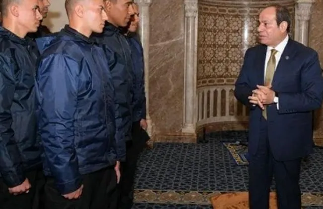 الرئيس السيسى يناقش الطلاب المتقدمين للكليات العسكرية ويؤدى معهم فريضة الصلاة