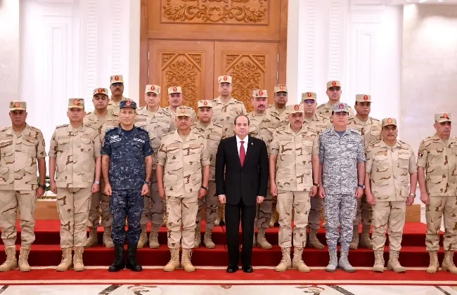 اجتمع الرئيس عبد الفتاح السيسي رئيس الجمهورية القائد الأعلى للقوات المسلحة، اليوم، بعدد من قادة القوات المسلحة