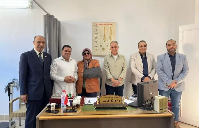واثناء الزيارة قام بمقابلة كل من الدكتور" وائل ناصر" ، و الدكتورة " نشوى قعيدار" ، رؤساء وحدة الطب الرياضى بالمدينة