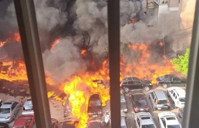 بالعاصمة بيروت، وامتددت النيران لعشرات السيارات المركونة في المكان وفي شوارع محيط