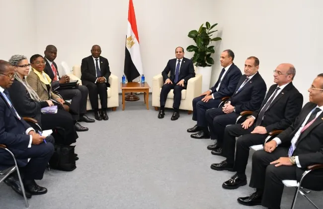 التقى الرئيس عبد الفتاح السيسي الرئيس الجنوب أفريقي سيريل رامافوزا، وذلك على هامش