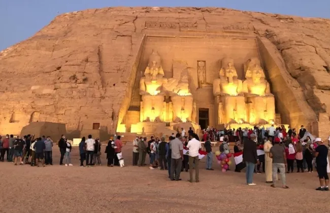 توافد السائحين الأجانب والزائرين على معبد أبوسمبل لمشاهدة تعامد الشمس