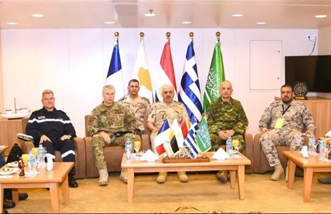 من القوات الجوية والبحرية والدفاع الجوى والقوات الخاصة المصرية واليونانية والقبرصية والفرنسية والسعودية