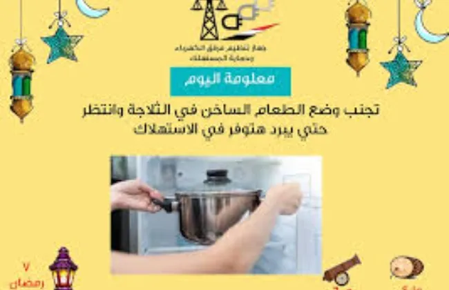 وجه جهاز تنظيم مرفق الكهرباء وحماية المستهلك عبر صفحته الرسمية على موقع التواصل الاجتماعي فيس بوك بعض النصائح لتقليل استهلاك الثلاجة للكهرباء