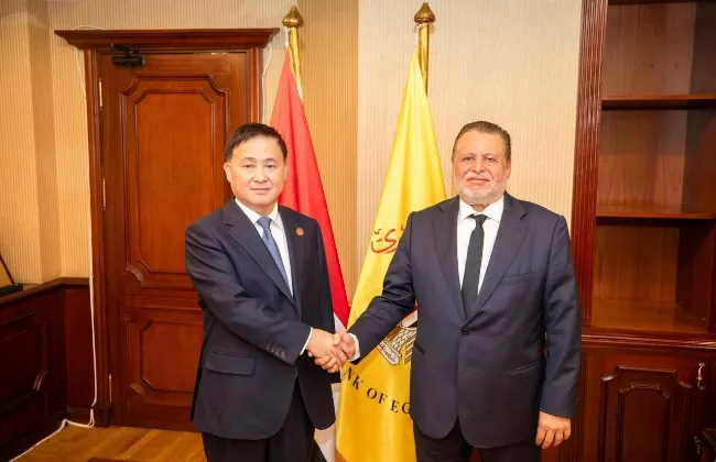 بان قونغ شنغ، محافظ البنك المركزي الصيني، والوفد المرافق له، خلال زيارته الحالية إلى مصر