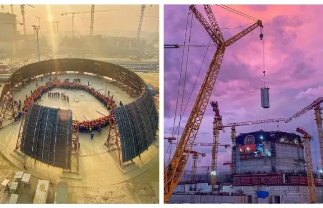 تركيب جميع شرائح المستوى الأول من مبنى الاحتواء الداخلي لمفاعل الوحدة النووية الثانية