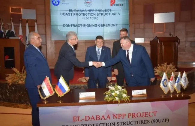 شهد الدكتور أمجد الوكيل رئيس هيئة المحطات النووية لتوليد الكهرباء توقيع شركة بتروجت وشركة أتوم ستروي إكسبورت (ASE) المقاول العام لمشروع الضبعة النووي عقد أعمال بمحطة الضبعة النووية بقيمة تقارب الــ 100 مليون دولار   وشارك في مراسم حفل التوقيع، المهندس وليد لطفي رئيس شركة بتروجت وأليكسي كونونينكو مدير مشروع الضبعة النووي ونائب رئيس شركة  أتوم ستروي إكسبورت والدكتور أسامة صديق نائب رئيس هيئة الرقابة النووية والإشعاعية وعدد ....