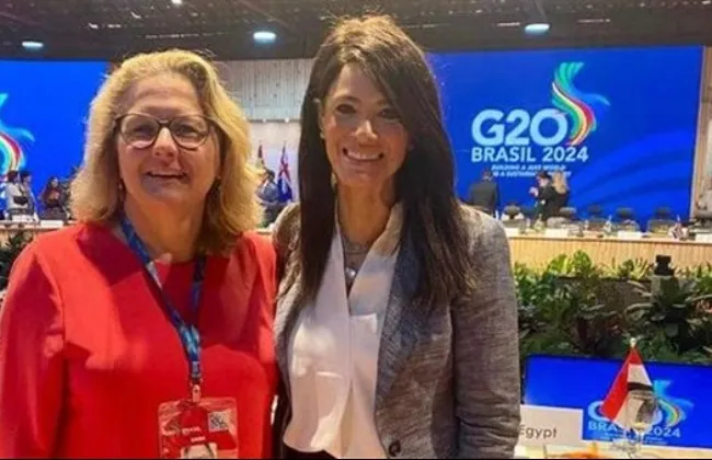 وذلك ضمن فعاليات مشاركتها في اجتماع وزراء التنمية لمجموعة العشرين التي انعقدت بمدينة ريو دي جانيرو البرازيلية، حيث يعد اللقاء هو الأول عقب تولي الحقيبة الجديدة