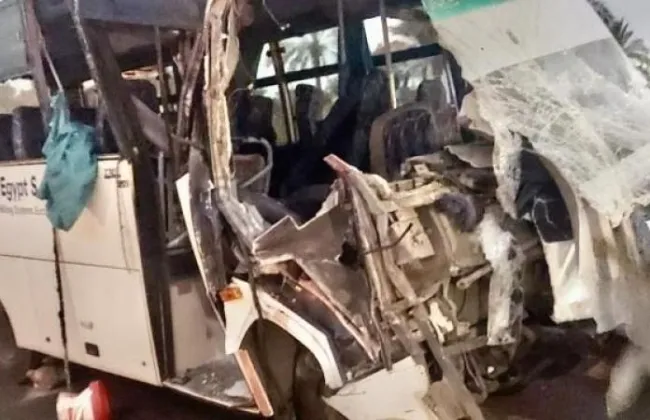 مابين كدمات وسحجات وكسور وجروح نتيجة تصادم أتوبيس تابع لأحد المصانع