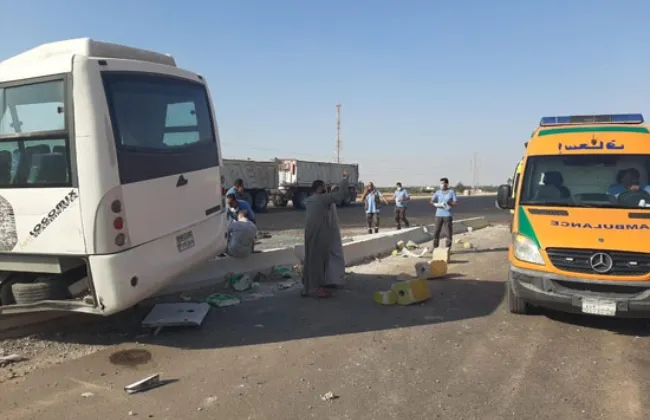 مصرع عامل وإصابة 10 إثر تصادم أتوبيس مع سيارة على طريق إسماعيلية الصحراوى