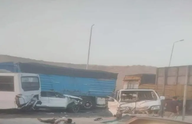 كان 24 شخصاً أصيبوا فى حادث تصادم 22 سيارة أعلى الطريق الدائرى ، وانتقلت سيارات الاسعاف والمرور