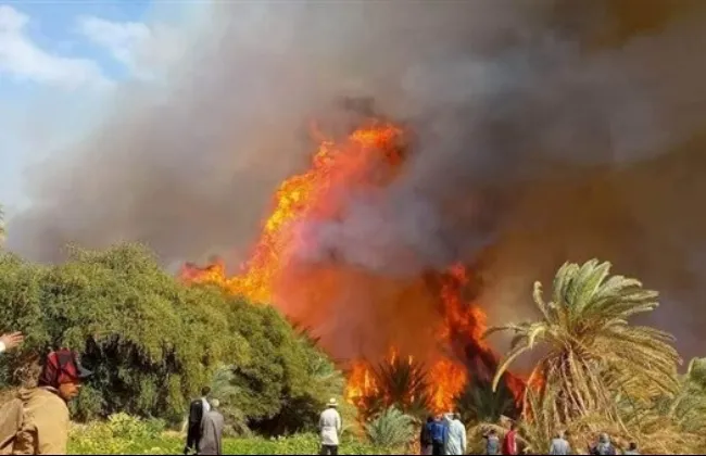 السيطرة على حريق هائل فى مزرعة نخيل بقرية القلمون بالداخلة