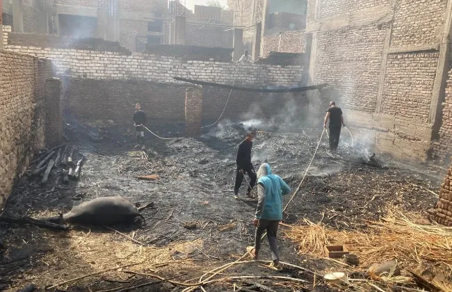 حريق مزرعة وأحواش بقرية الرمادى بأسوان